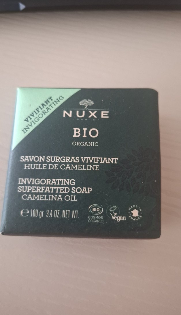 Nuxe Bio organik sabun, camelina yağı ile zenginleştirilmiş canlandırıcı ve ekstra nemlendiren formüle sahiptir. Vegan ve Fransa üretimidir.