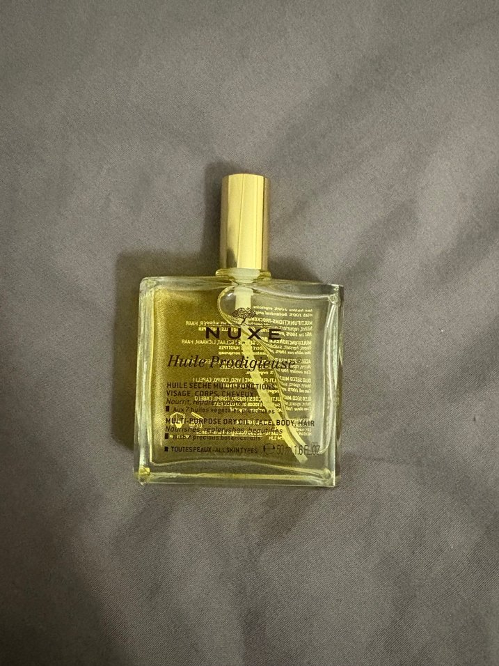 NUXE Huile Prodigieuse, yüz, vücut ve saç için çok amaçlı kuru yağdır. Besleyici ve yumuşatıcı etkisi ile hoş bir parfüme sahiptir.