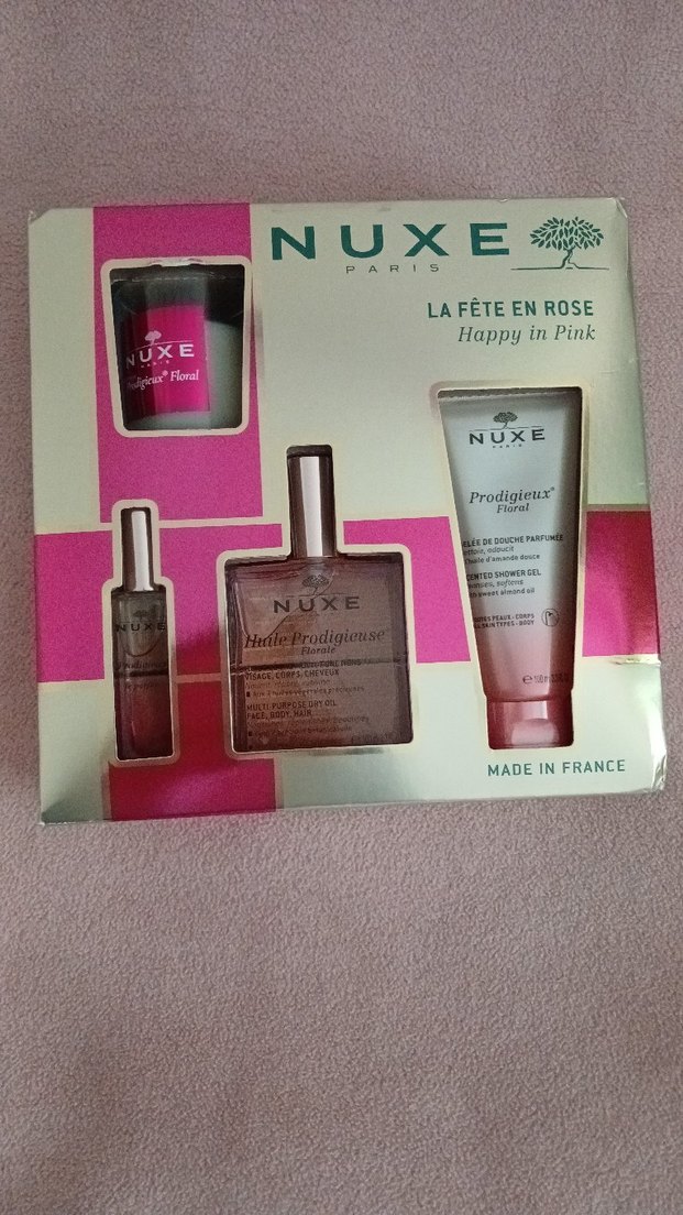 Nuxe La Fête en Rose kadın parfüm seti, çiçeksi kokulu parfüm, duş jeli ve küçük parfüm şişesi içerir. Fransa yapımı.
