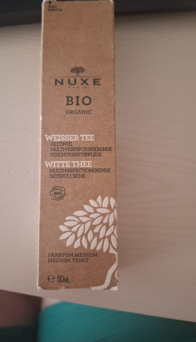 Nuxe Organik BB Krem, orta ton bej rengiyle beyaz çay özü içeren çok yönlü nemlendirici bakım sunar, 50ml.