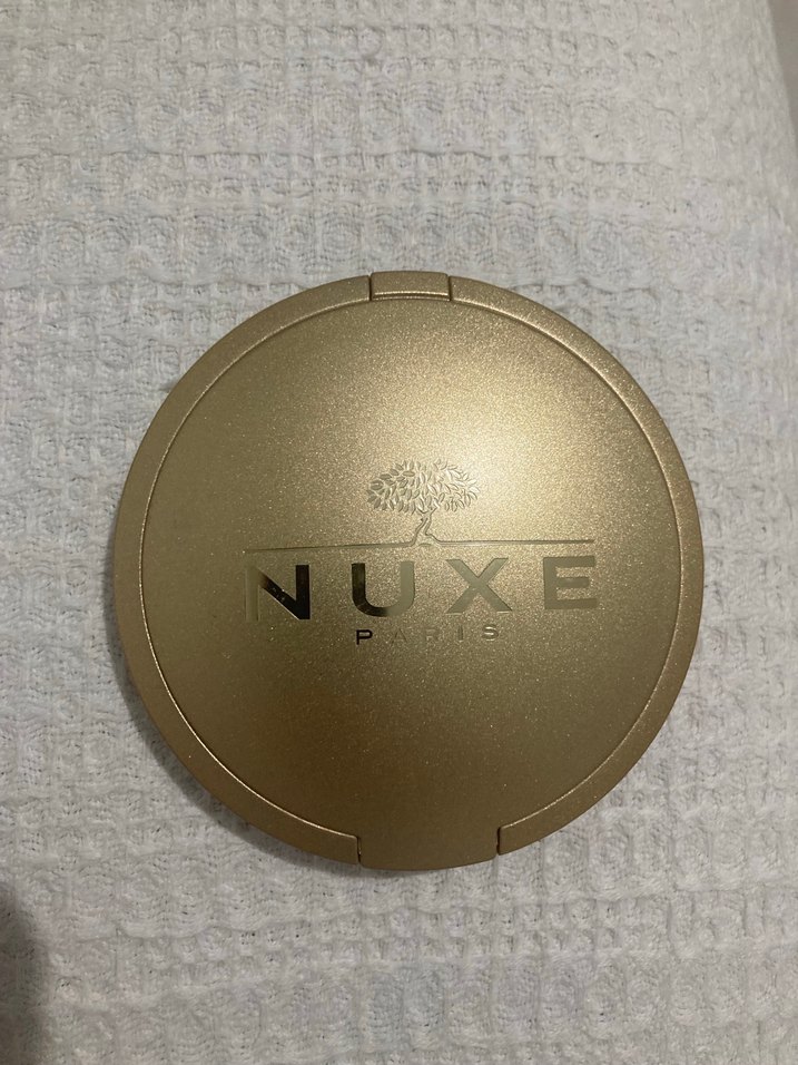 Nuxe markasına ait parlak altın renkli pudra, şık kompakt tasarıma sahiptir ve ışıltılı bir görünüm sağlar. ✨