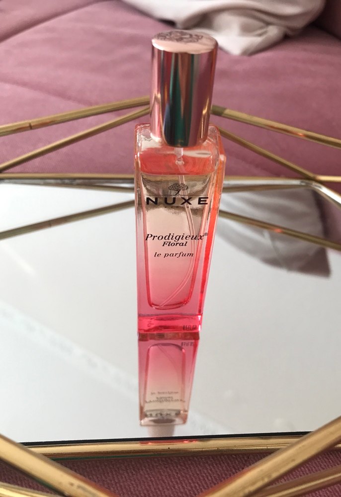 NUXE Prodigieux Floral kadın parfümü, parlak metal kapaklı, pembe tonlarda şık bir şişeye sahip. Çiçeksi kokusu ile zarif bir deneyim sunar. 15 mllik bir üründür. Sadece kokusuna bakmak için birkaç kez sıktım. Orijinal üründür.