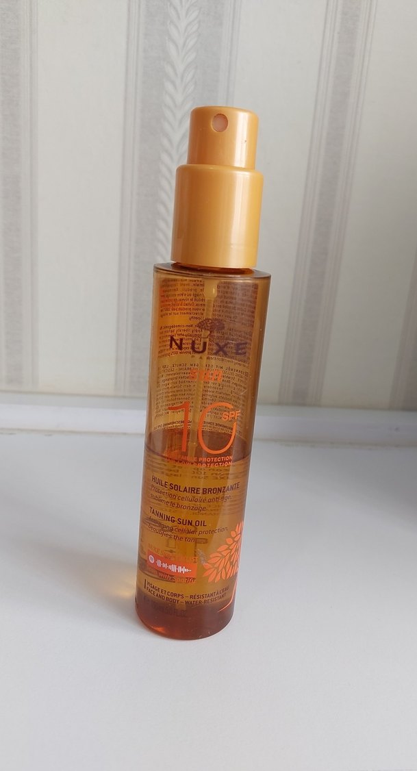 NUXE SPF 10 bronzlaştırıcı güneş yağı, hafif koruma sağlar ve cildi besleyerek bronzlaşmayı destekler.