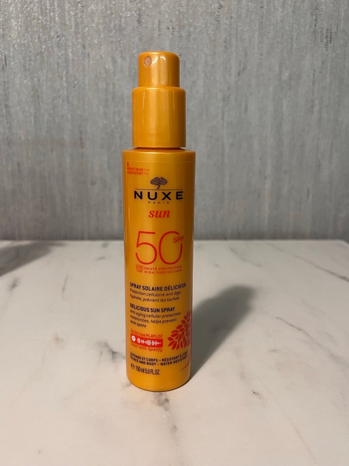 Nuxe Sun SPF 50 sprey, cildi koruyan hassas bir formül ile yüksek güneş koruması sağlar. Yüz ve vücut için uygundur. ☀️ yarısı duruyor