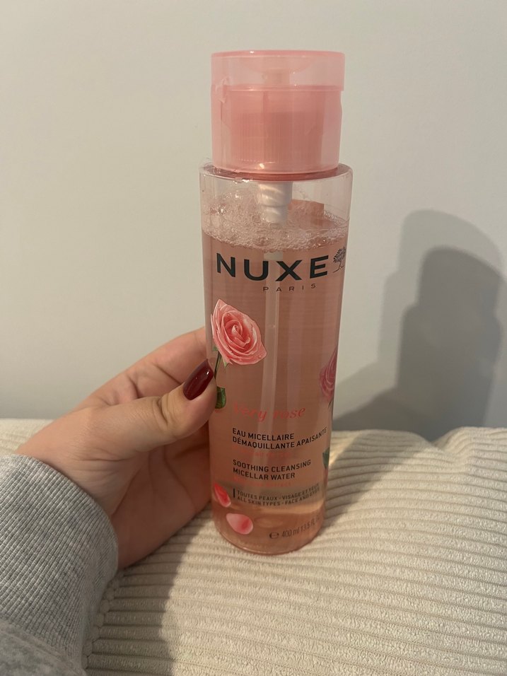 NUXE gül özlü misel su, makyajı nazikçe temizler ve cildi ferahlatır. %90 dolu göz makyajını iyi çıkarıyır yağ bazlıya geçtiğim için satıyorum