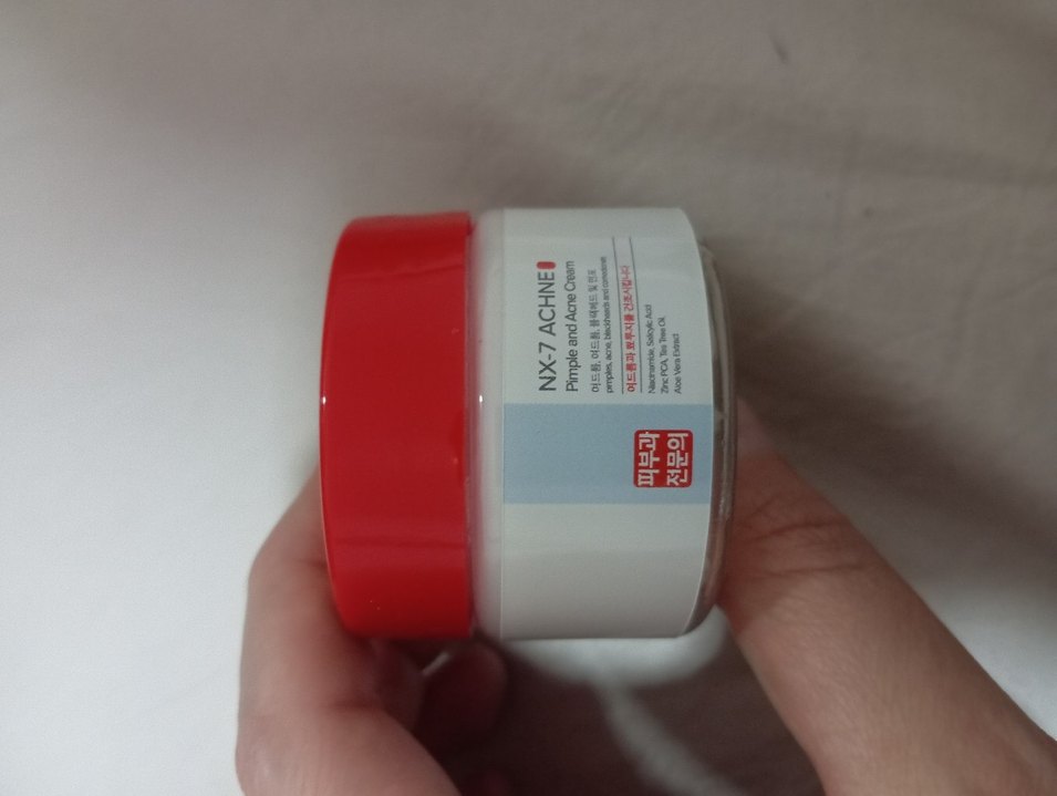 NX7 Akne yüz kremi, akne bakımı için kırmızı kapaklı kompakt kavanozda sunulmuştur. sivilce kremi 50 ml