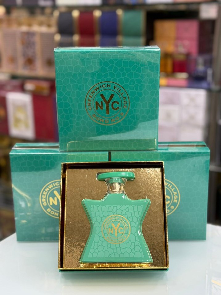 Turkuaz renkli ve dokulu şişeye sahip NYC Greenwich Village kadın parfümü. Altın detaylar ve uyumlu kutusuyla şık bir tasarım sunar.