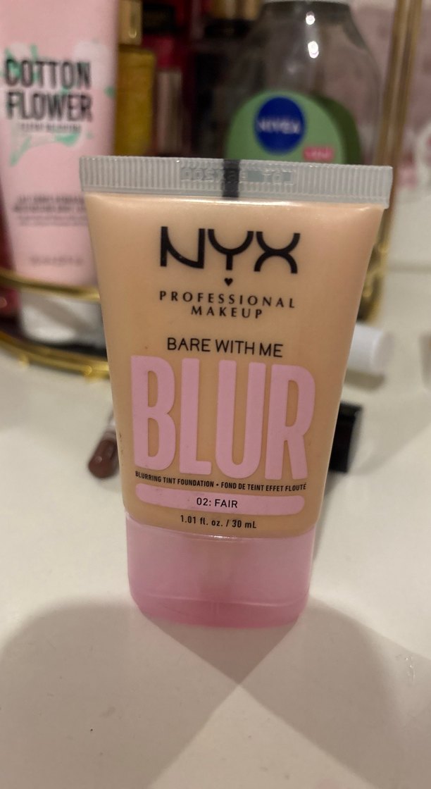 NYX Bare With Me Blur BB Krem 02 Fair, pastel bej tonunda, cildi pürüzsüzleştiren bir etki sunar. 30 ml tüpte.