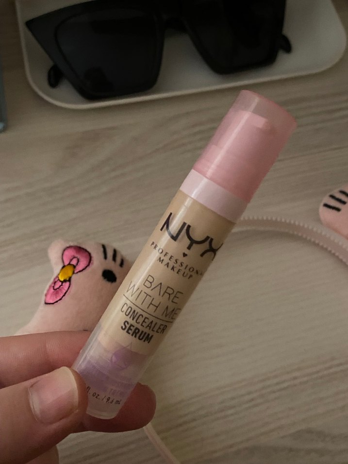 NYX Bare With Me kapatıcı serumu, bej renginde, hafif kapatıcılık ve pastel ton sunar. Doğal bir görünüm için kolayca karışır.