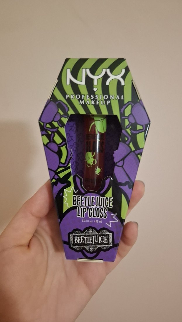 NYX'in Beetlejuice koleksiyonundan lip gloss, profesyonel makyaj görünümü sunar. Ambalajı tabut şeklindedir. Sıfır ambalajlı koleksiyon ürünü