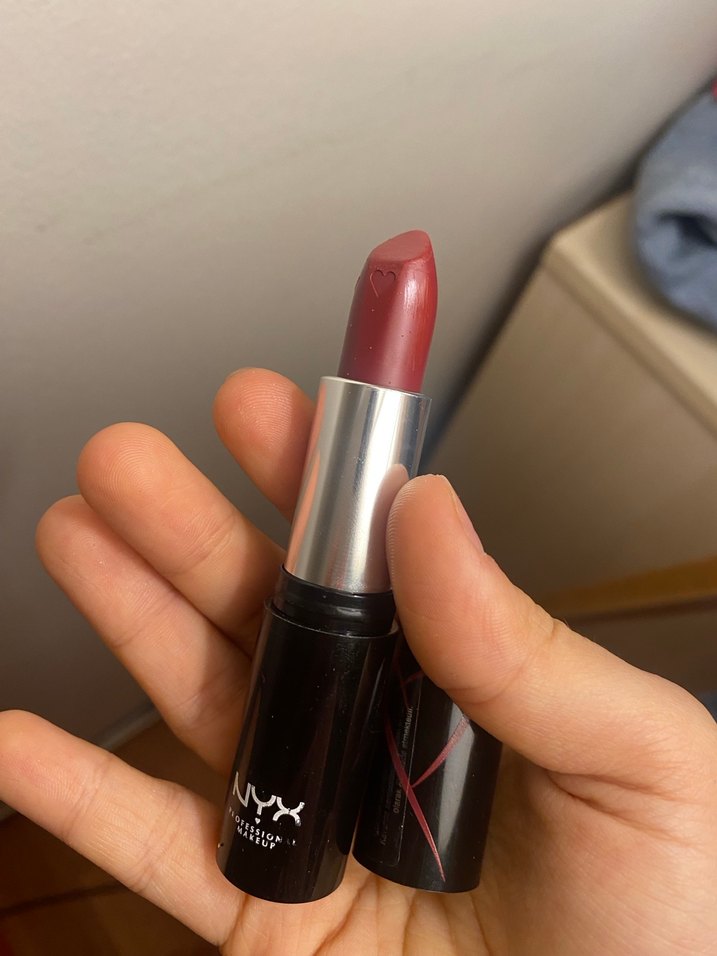 NYX markasına ait koyu bordo renkli, yumuşak dokulu ve uç kısmında ince kalp detayı bulunan ruj orijinal.1-2 kere kullandım sevgilimin doğum gününe kadar eşyalarımı satarak para biriktiriyorum:)