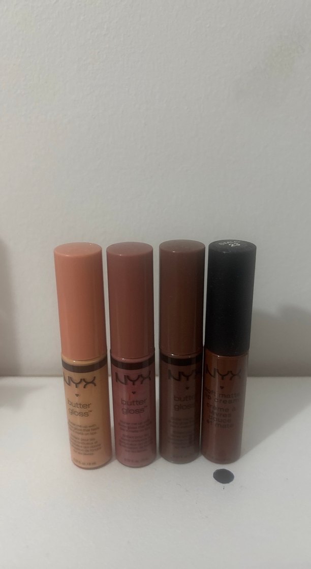 NYX markalı, koyu bej tonlarında, kremamsı dokulu dört rujdan oluşan set. Zengin renk uygulaması sağlar.