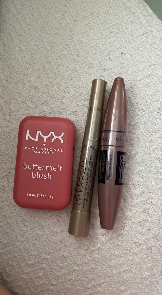 NYX Buttermelt pembe allık ve iki maskara içeren set, hafif ve canlı makyaj seçenekleri sunar.