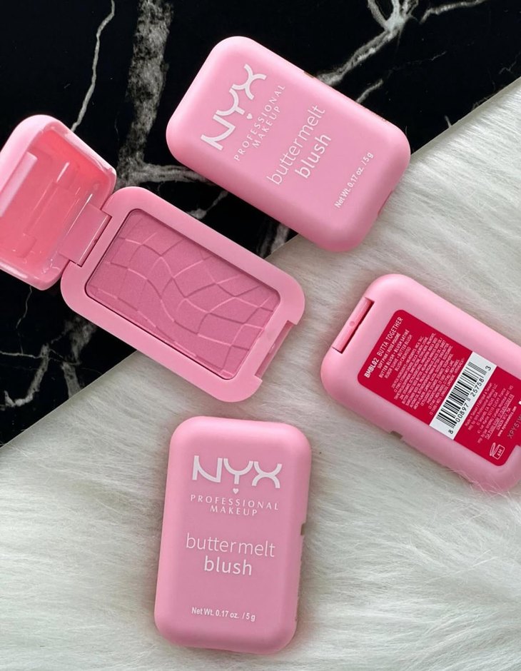 NYX Buttermelt allık, yumuşak ve pastel pembe tonunda, kolay uygulanabilen dokuda. Kompakt kutuda sunulur.