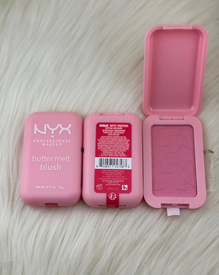 NYX Buttermelt allık, yumuşak pastel pembe tonunda, doğal ve pürüzsüz bir görünüm sağlar. 5g ürünü kompakt kutuda sunulur.