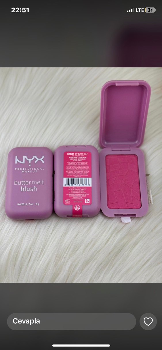 NYX Buttermelt allık, pastel pembe tonunda, yumuşak ve pürüzsüz dokulu, doğal bir görünüm sağlar. Kompakt kutuda.