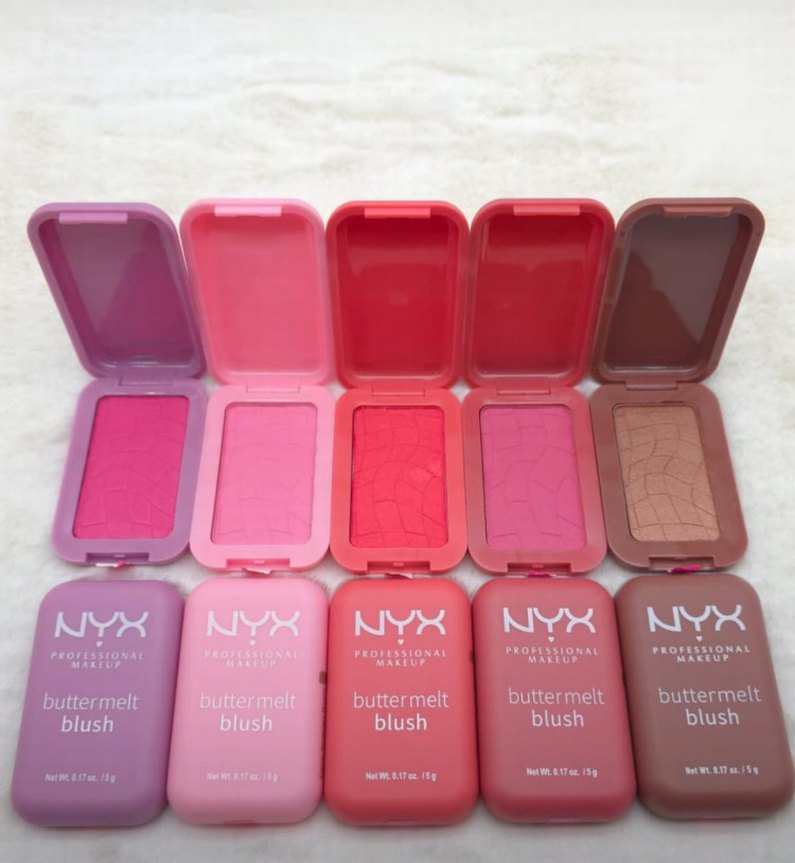 NYX Buttermelt allık seti, doğal ışıltı için beş canlı pembe ton içerir ve yumuşak, kolay karışan formüle sahiptir.