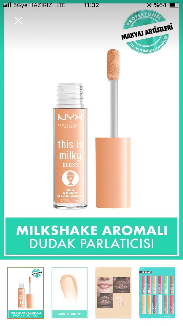 Milkshake aromalı, pastel bej renkte, sütlü bitişli dudak parlatıcısıdır. Dudaklara parlak ve yumuşak bir görünüm verir.