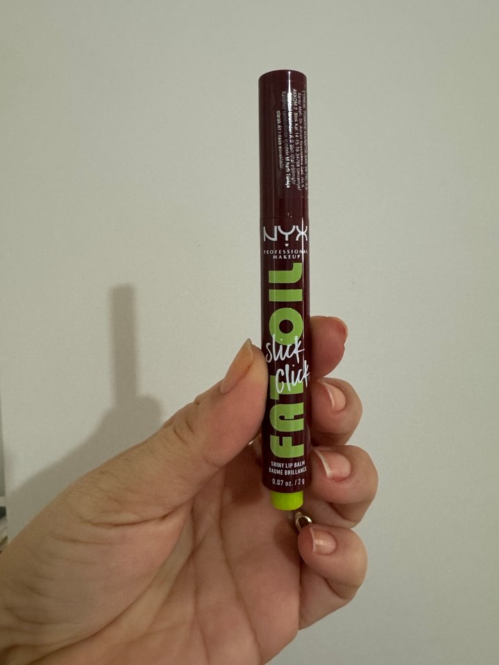 NYX Foil Stick Click dudak balmı, parlak bir görünüm ve kolay sürüm sağlar. Koyu renk gibi görünsede bir dudak balmıdır. Kalem formundadır. Ürün sıfır ve etiketlidir. Alana şans getirsin♥️