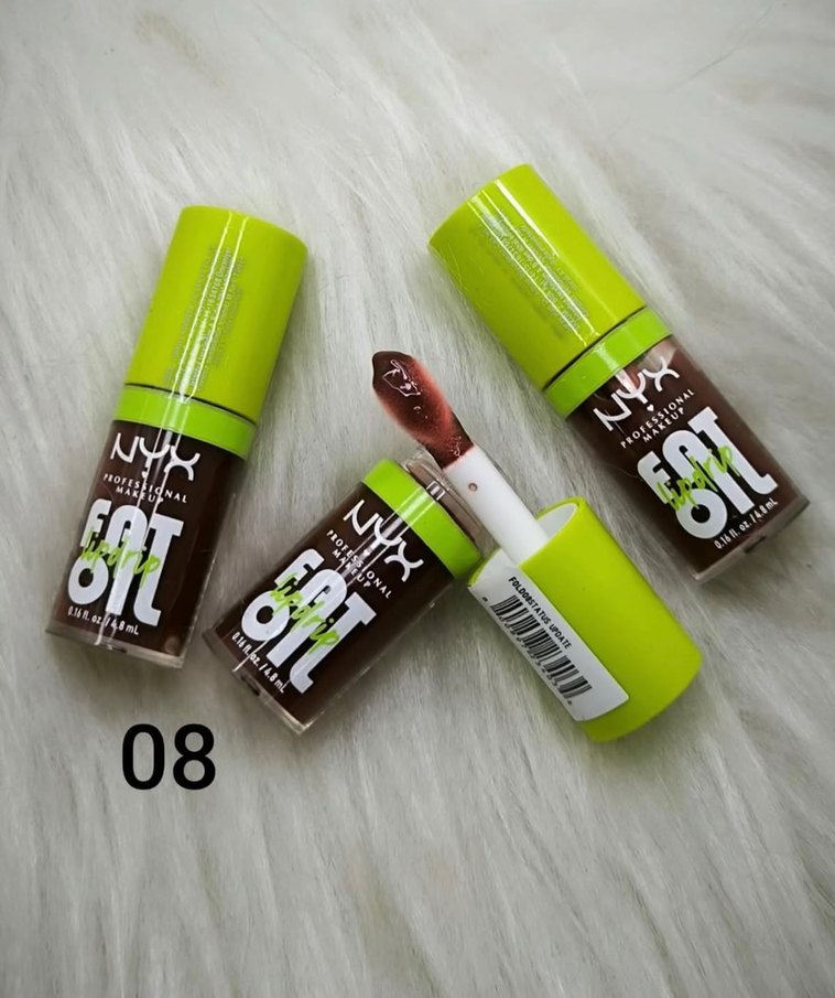 NYX Got Oil dudak parlatıcısı, 08 numara kahve renkte canlı ve parlak bir görünüm sağlar. Yumuşak dokuludur.