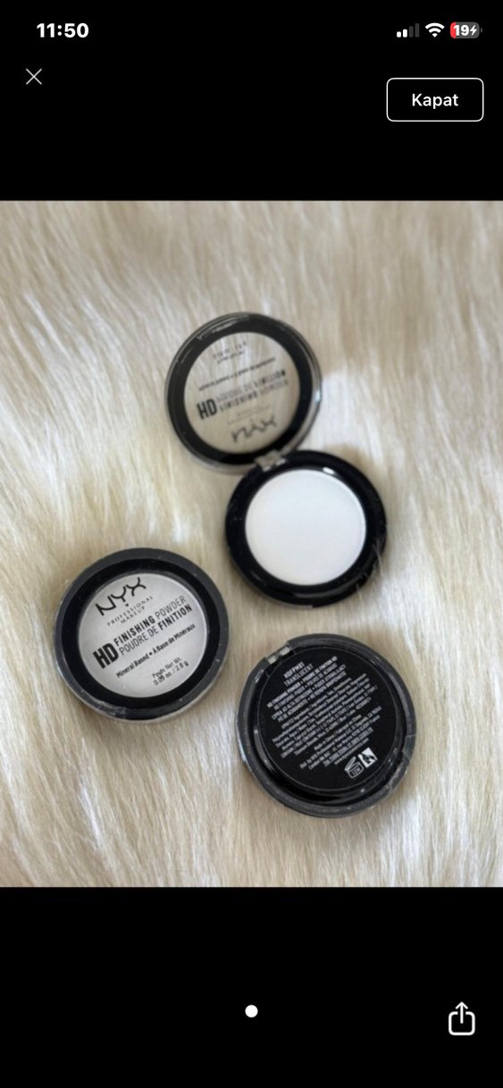 NYX HD Bitirici Pudra, beyaz renkte, cilde pürüzsüz ve mat bir görünüm sağlar. Hafif dokusuyla makyajı sabitler. ✨