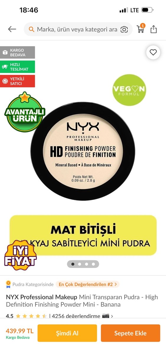 NYX HD mat bitişli mini pudra, mineral bazlı formülü ve açık bej rengiyle makyajı sabitler. Vegan formüle sahip hafif pudra.