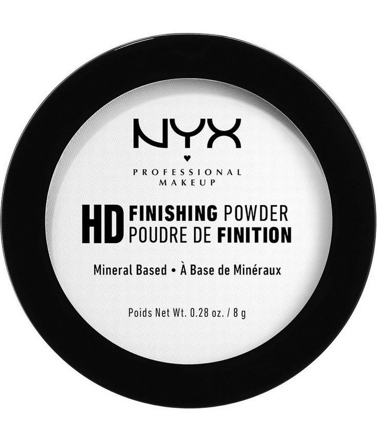 NYX mineral bazlı bitirici pudra, parlak beyaz renkte, 8g net ağırlığındadır ve profesyonel makyaj görünümü sağlar.✨
