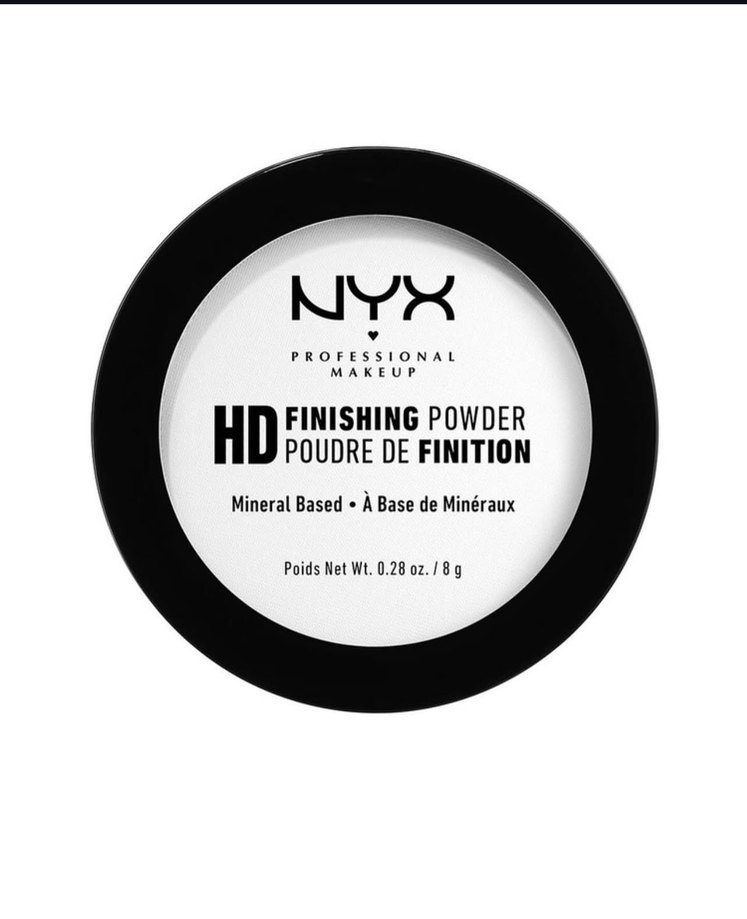NYX HD bitirici pudra, parlak beyaz renkte, mineral bazlı formülüyle profesyonel makyajda pürüzsüz bir görünüm sağlar. Net ağırlık 8g. ✨