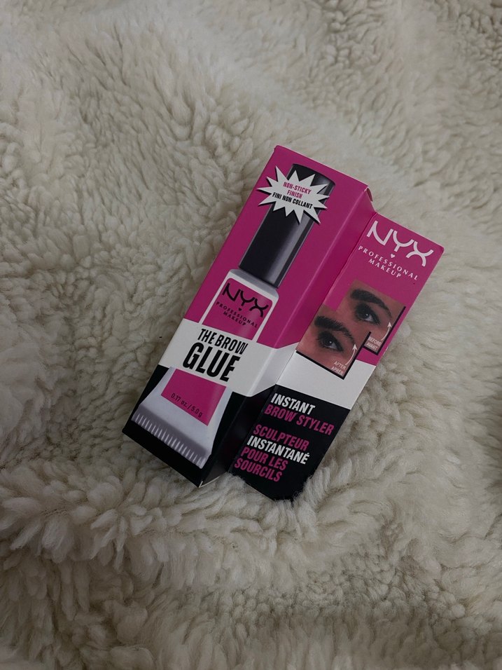 NYX Instant Kaş Yapıştırıcı, pembe ambalajda hızlı ve güçlü tutuş sağlar. Gri tonlu formülüyle doğal kaş şekillendirme sunar.