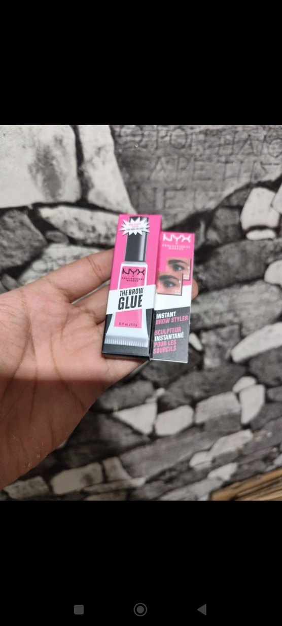 NYX kaş sabitleyici jel, pembe ambalajda ve gri kapaklı, kaşları anında şekillendirip sabitler. ️