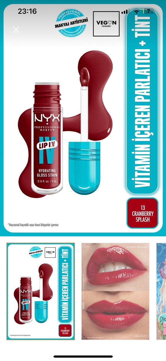 NYX Lip I.V Canlı pembe renkte, dudaklara renk ve nem kazandıran parlak serumdur.