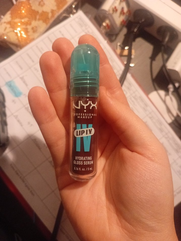 NYX LIP IV turkuaz renkte nemlendirici ve parlaklık sağlayan ruj parlatıcı. 1 kere kullandım bana koyu geldi geri iade edemedim Sıfır ayarında bordo blackberry tonlarını sevenler kaçırmasın. Yapısı kokusu çok güzel arkada tint bırakıyor başka renklerini de kullanıyorum koyu gelmese satmazdım Watsonstan aldığım fiyatı ekledim kesinlikle sahte değildir