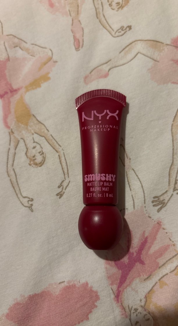 NYX Smushy Mat Ruj Balmı, koyu bordo renginde, dudaklara yumuşak ve mat bir görünüm sağlar. Rahat kullanım sunar.