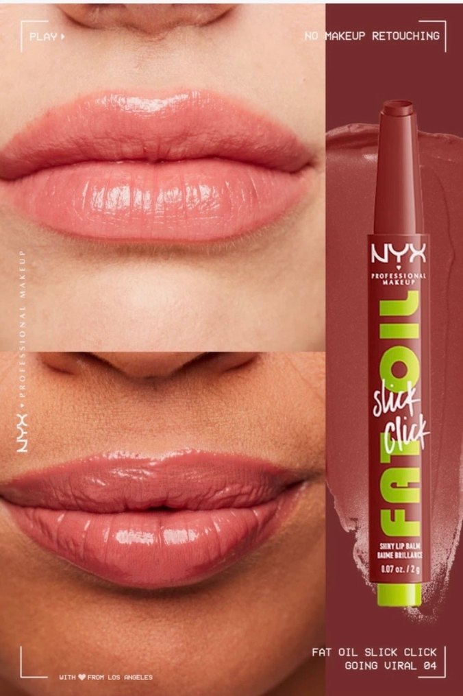 NYX Fat Oil Slick Click pastel bej lip gloss, parlak ve pürüzsüz bir görünüm sunar. Dudakları nemlendirir ve hafif makyaj dokunuşu sağlar.