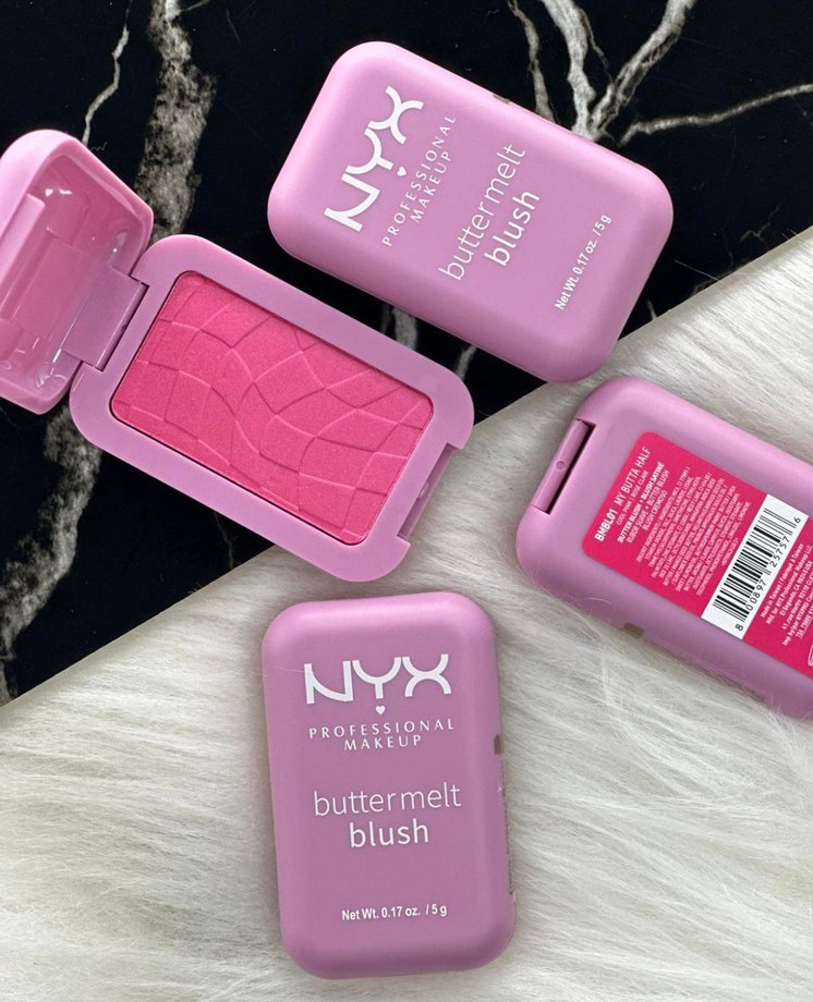 NYX Buttermelt allık, pastel pembe renkte, yumuşak dokulu ve doğal bir görünüm sağlar. Kompakt kutusu taşıması kolaydır.