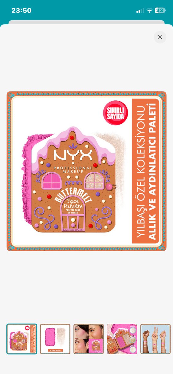 NYX pastel pembe renkli, allık ve aydınlatıcı tonları içeren yılbaşı özel koleksiyon paletidir. Sınırlı sayıda üretilmiştir.