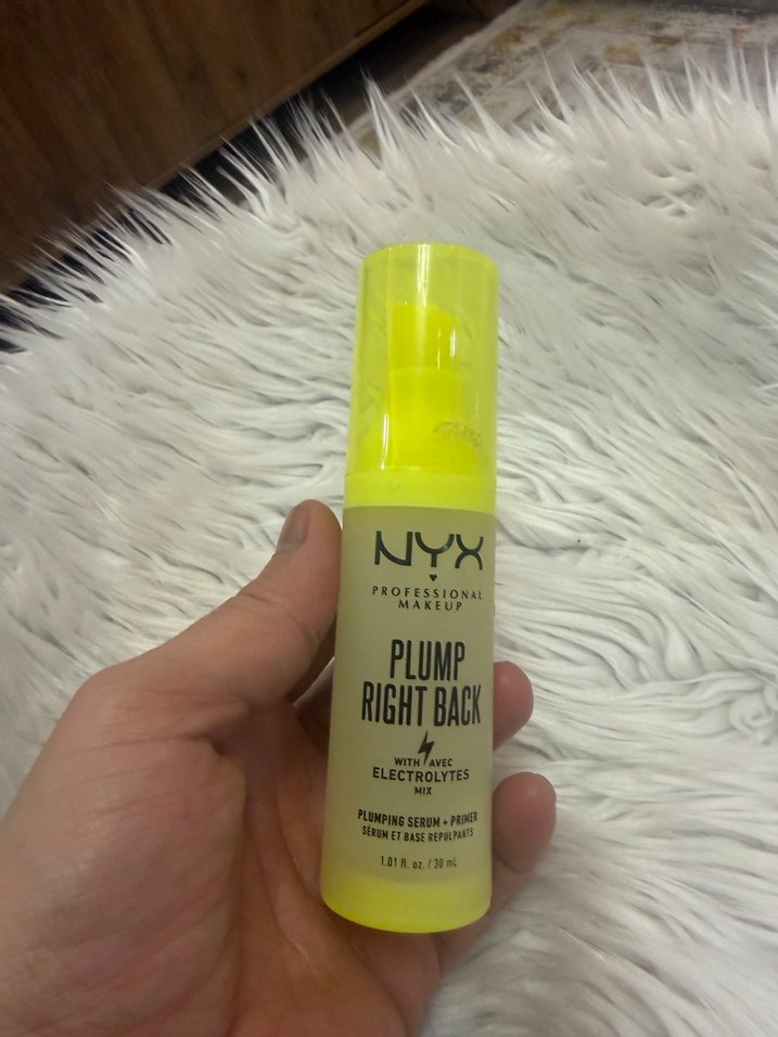 NYX Plump Right Back, elektrolit içeren sarı renkte dudak dolgunlaştırıcı serumu.