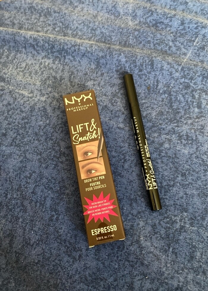 Nyx professional makeup lift snatch brow tint 08 espresso kaş kalemi kaşımın rengine koyu kaldı sadece denemek için bir kez kullanabildim yakıştıramadım uymadı yani bana temiz bir kez kullanıldı fiyatta yardımcı olmaya çalışırım
