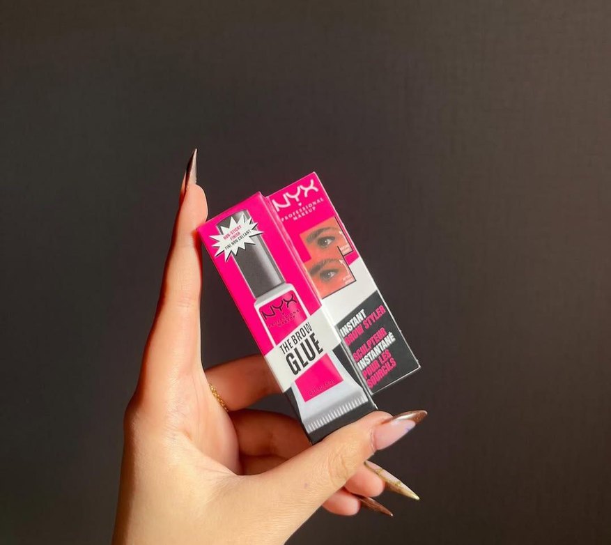 NYX Profesyonel, pembe renkte anında şekillendirme ve uzun süreli tutuş sağlayan renkli kaş yapıştırıcısıdır.