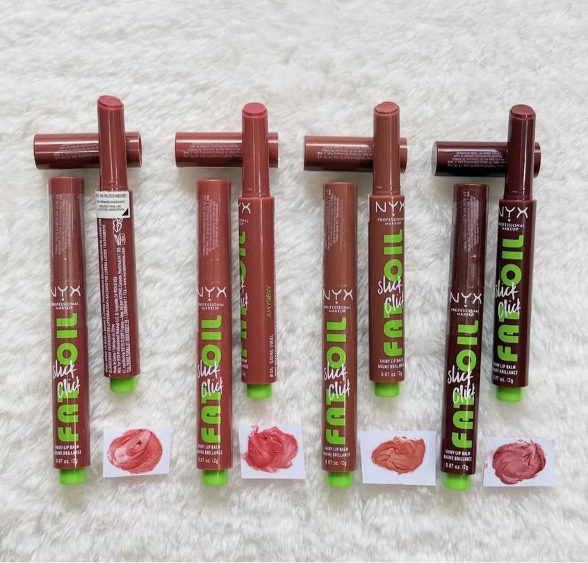 NYX markalı, bej tonlarında renkli dudak parlatıcısı. Pürüzsüz ve parlak bir görünüm sağlar. Üzerinde 'TIOU' etiketi bulunmaktadır.