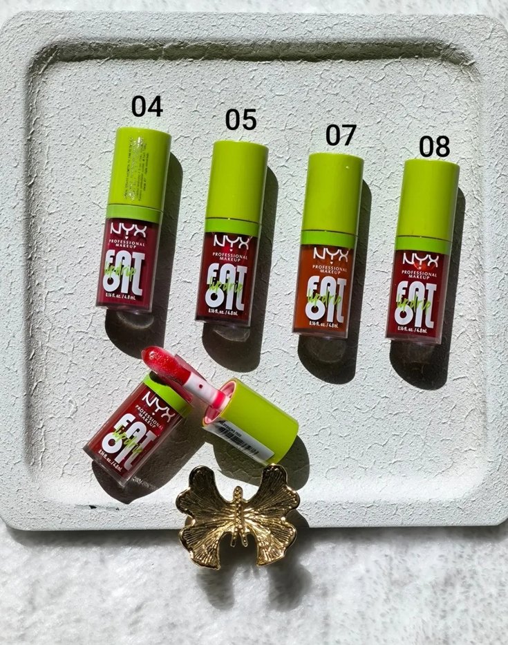 Nyx renkli khaki dudak parlatıcısı, 05, 04, 07 ve 08 numaralı seçeneklerle parlak ve kolay uygulanır.