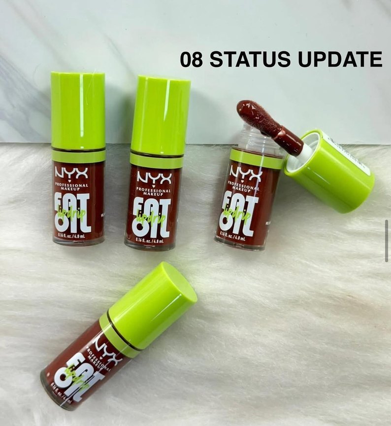 NYX markalı, 08 Status Upd kodlu renkli haki tonunda lip gloss, canlı ve parlak bir görünüm sağlar.