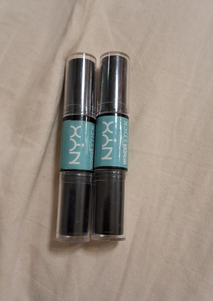 NYX Wonder Stick, turkuaz renkli ve çift uçlu kapatıcı ile aydınlatıcı sunar. Üzerinde 'XAN' yazısı bulunur. ✨ Fiyatlar 2 ürün için.