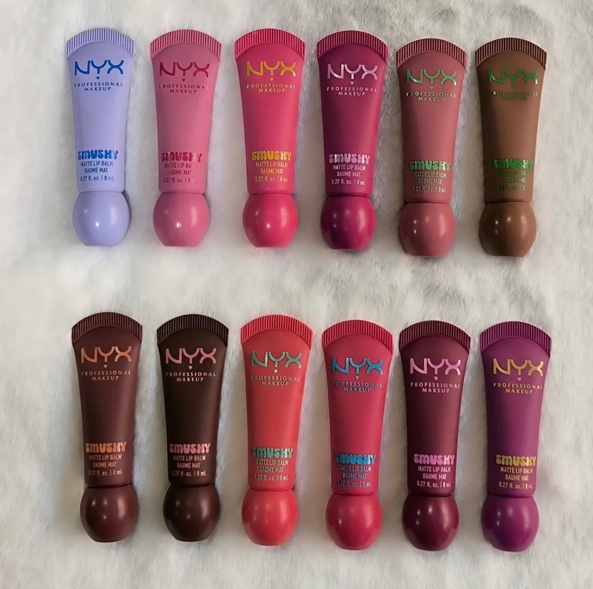 NYX yumuşacık mat dudak balmı , çeşitli canlı tonlarda sıkılabilir tüplerde 0,27 fl oz ürün içerir.