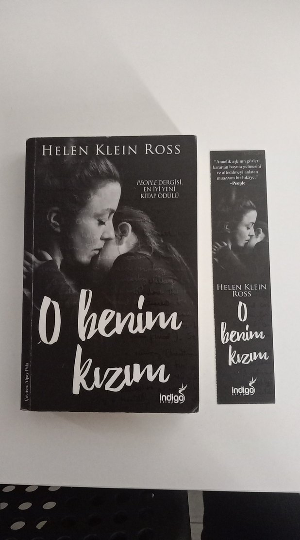 Helen Klein Ross'un "O Benim Kızım" adlı romanı, siyah kapakta anne ve çocuğun duygusal sarılmasını gösterir. Kitapla uyumlu aynı görselli bir ayraç da bulunur. Hasarsız