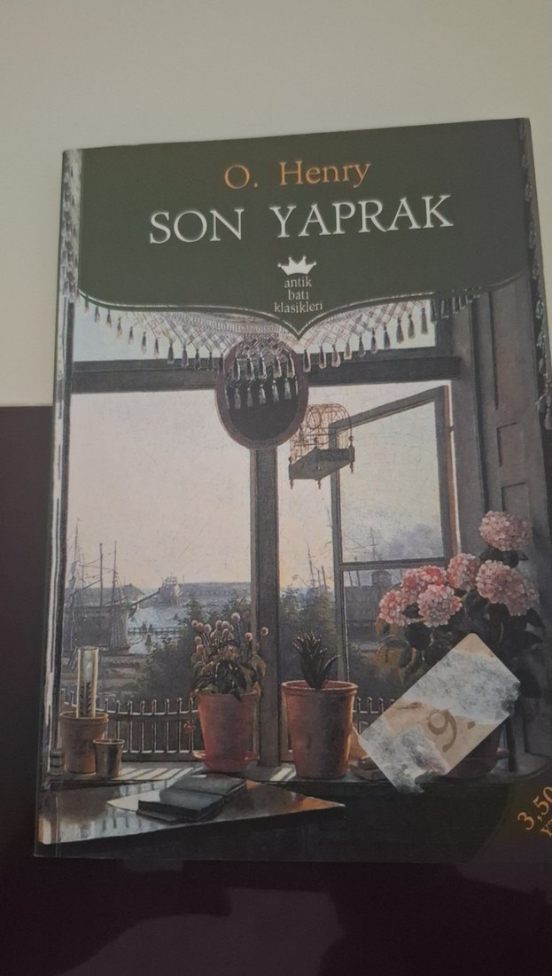 O. Henry'nin "Son Yaprak" adlı romanı, duygusal temalar içeren klasik bir eserdir. Kapakta bitkilerle dolu huzurlu bir pencere sahnesi yer alıyor.