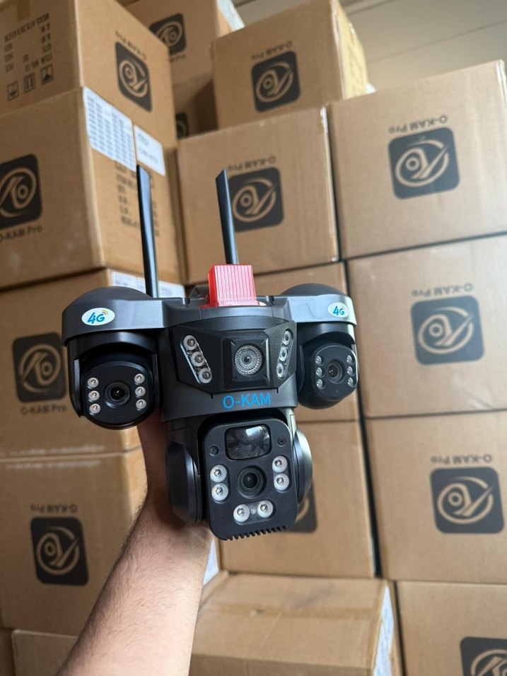 O-KAM 4G kablosuz güvenlik kamerası, çoklu lens ve gece görüş özelliği ile güvenilir video gözetimi sağlar. 4G bağlantı ve antenlere sahiptir.