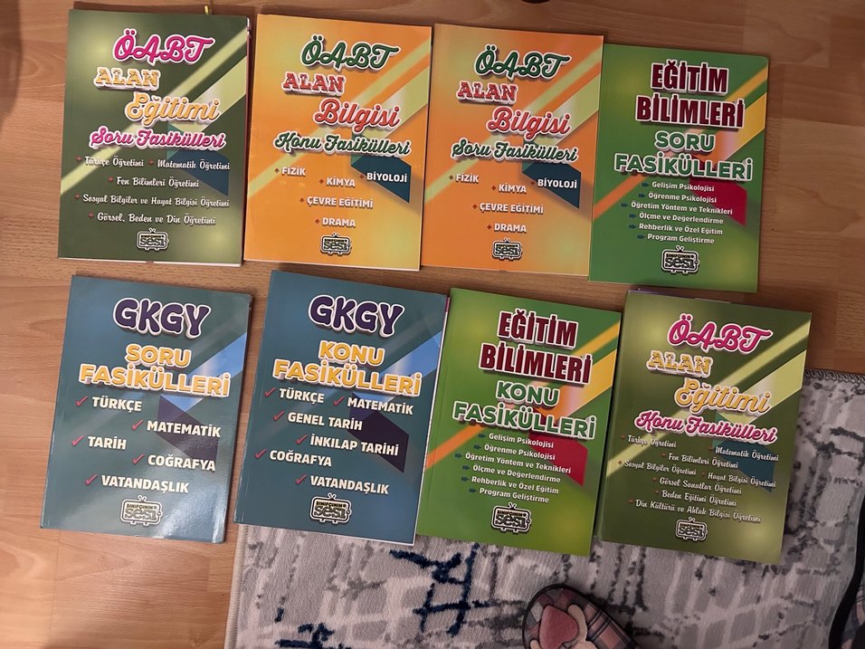 Fizik, kimya, biyoloji, çevre eğitimi, drama, Türkçe, matematik, genel tarih, coğrafya, vatandaşlık ve eğitim bilimleri konularını içeren ÖABT konu ve soru fasikülleri seti. Adet fiyatı 120 liradır istediğiniz kitap için ilan açayım Sadece alan eğitimi Kısmında altı çizili yerler vardır diğer kitaplar tertemizdir