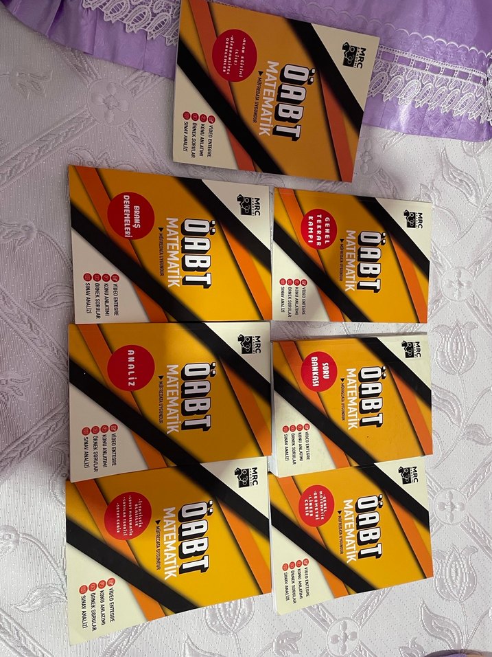 DABT ve OABT sınavları için çeşitli soru tiplerini içeren ÖABT Matematik soru bankası seti. Cevap anahtarı ve çözümleri yok hepsinin tek fiyatı 500.Bir çoğu boş.