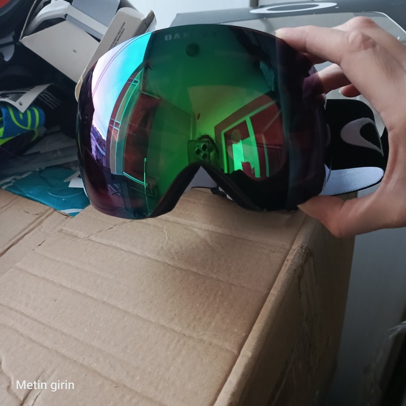 Şeffaf camlı, koyu tonlarda çok renkli, desen içermeyen erkek kayak gözlüğü. oakley orjınal